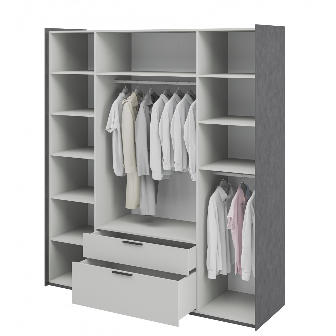 Элегантный шкаф Модена создает изысканную атмосферу в вашей спальни. Предлагается в трех стильных вариантах цветов: Белый-Дуб Элисон, Лунный камень-жемчуг, Металл Бруклин-лунный жемчуг.