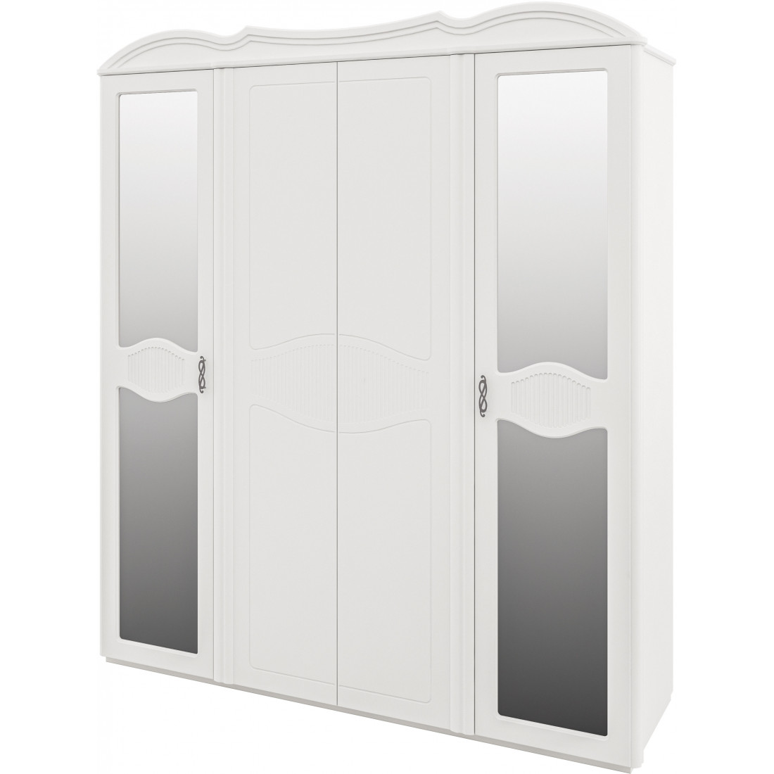 Четырехстворчатый шкаф для одежды и белья МН-025-24 в спальню серии София (Мебель-Неман) выполнен в светлом кремовом оттенке с благородным глянцем. Благодаря зеркальным створкам по всей высоте, большой гардероб с легкостью вписывается в общий интерьер, визуально делая пространство большим. Купить большой гардеробный шкаф в комнату – забыть о проблеме недостатка места для белья и вещей навсегда.