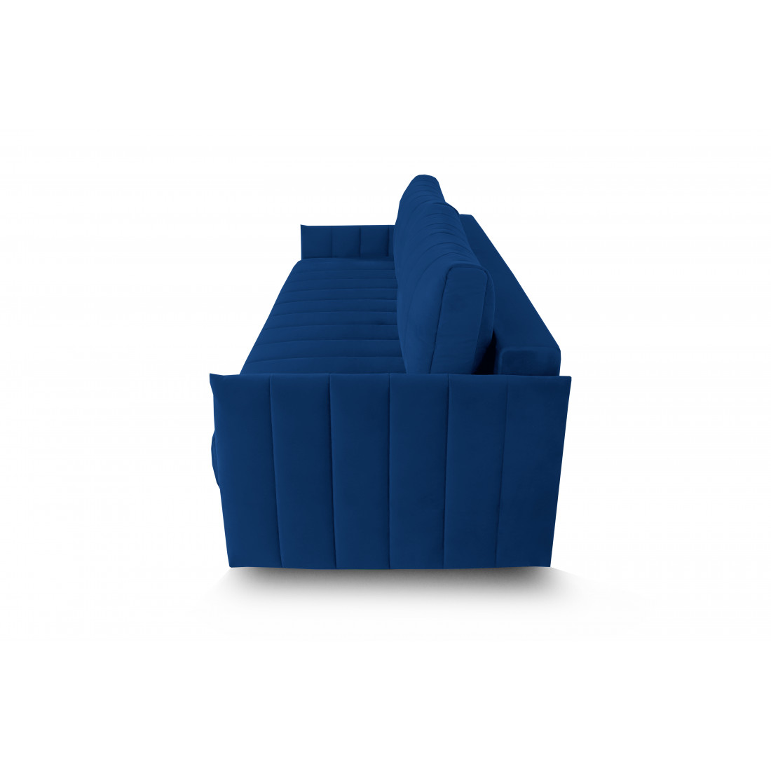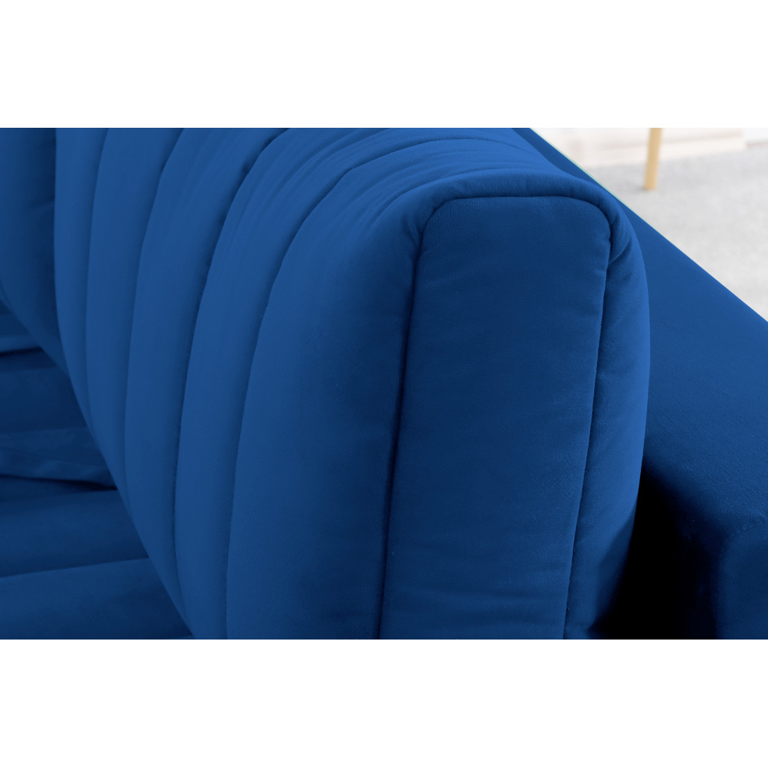 Подушки, сиденье и подлокотники дивана оформлены модной вертикальной стёжкой в современном стиле.