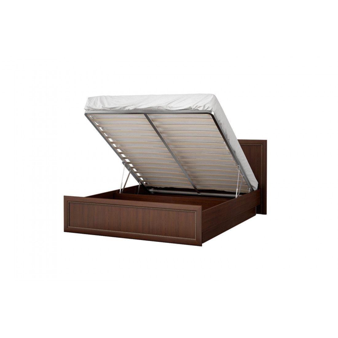 - В комплект кровати входит ортопедическое основание, состоящее из металлического каркаса и березовых ламелей, подъемный механизм.