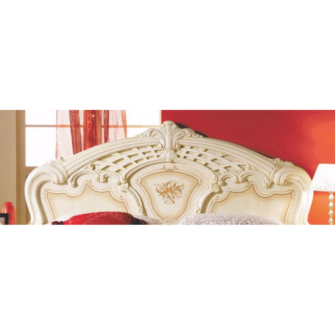 Двуспальная кровать Роза (беж) от Российской фабрики "ДИА мебель". Выполнена в элегантном классическом стиле. Такая большая и комфортная кровать с ортопедическим основанием, поможет Вам расслабиться и насладиться хорошим отдыхом после рабочего дня. Она выполнена в бежевом цвете с глянцевым покрытием, и золотистым орнаментом на фасадах. Обращает внимание на себя декоративная фрезеровка изголовья кровати.