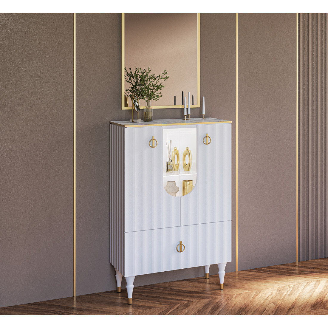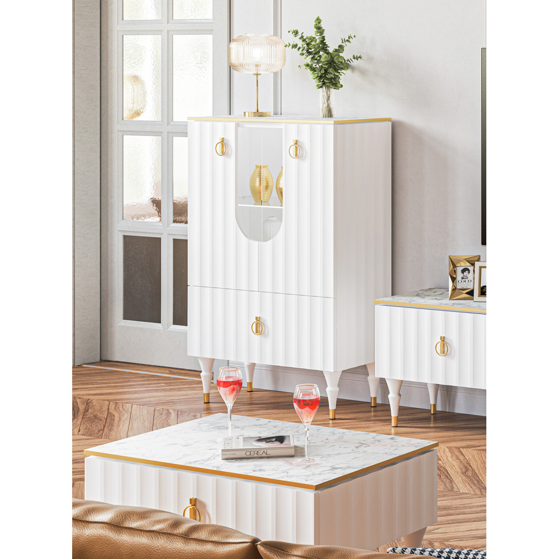 Комбинированный шкаф витрина Лоренсо МН-043-01 белый