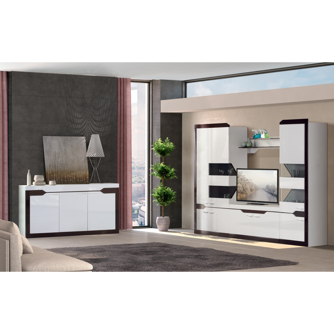 Фасады: МДФ, декоры – белый глянец, венге глянец, стекло