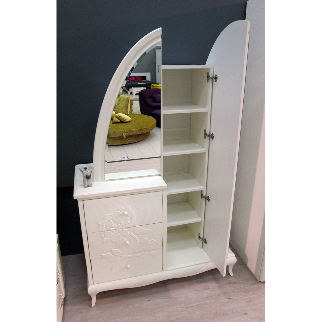 Комбинированный шкаф для одежды и белья с зеркалом МН-218-10 серии Астория от фабрики Мебель-Неман представляет собой разновидность оригинального трюмо и небольших размеров комода, состоящего из зеркала в полный рост в форме эллипса и вместительной тумбы. Купить утонченный и эффектный комплект для спальни стоит в любую просторную комнату – он придаст ощущения будуарности и великолепия в интерьер.