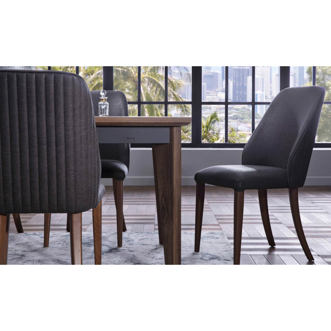 Комплект обеденных стульев для гостиной ALEG-16-02 серии Алегро от Беллона в темном исполнении гармонично дополнит обеденную зону не только в гостиной, но и на кухне, в столовой, а также помещения квартиры-студии. Благодаря недорогой цене и прочной, практичной конструкции охотно используется для меблировки залов элитных кафе и ресторанов.