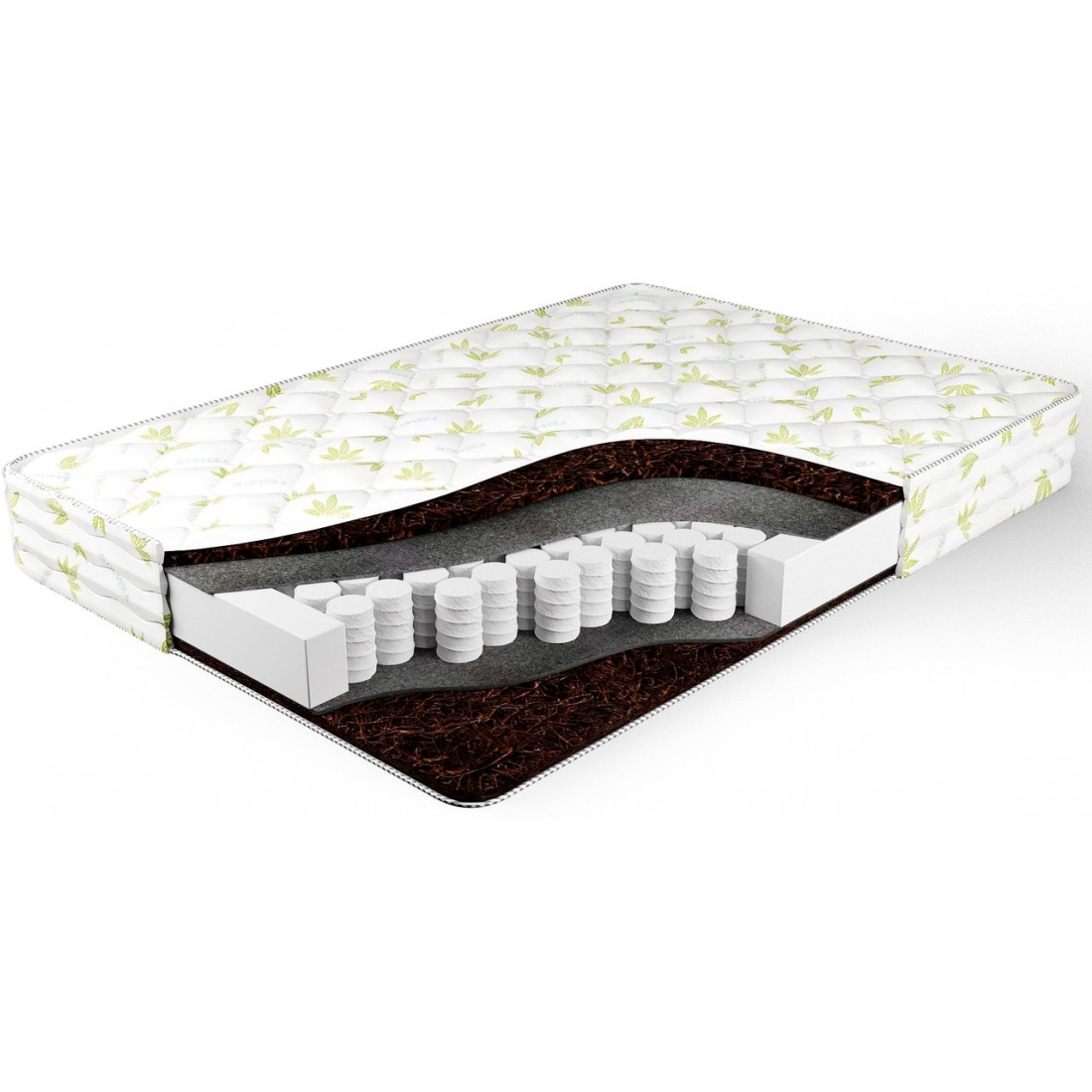Наполнение: независимый блок TFK, высота блока 140 мм, ортопена 15 мм с двух сторон, кокосовая плита 10 мм с 1-ой стороны, износостойкий спанбонд с 2-х сторон, усиление по периметру - короб из ортопены.