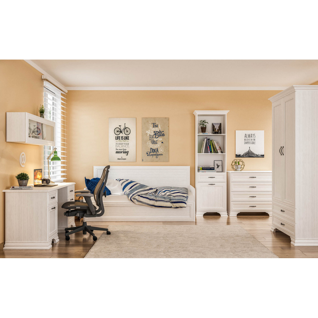 Мебель для молодежной Юнона от фабрики Мебель-Неман - это новинка 2019 года в классическом стиле с отделкой структурной фактуры, обрамленная рамочным фасадом, где металлические ручки выгодно подчёркивают стиль и изящество, всегда актуальна и востребована.