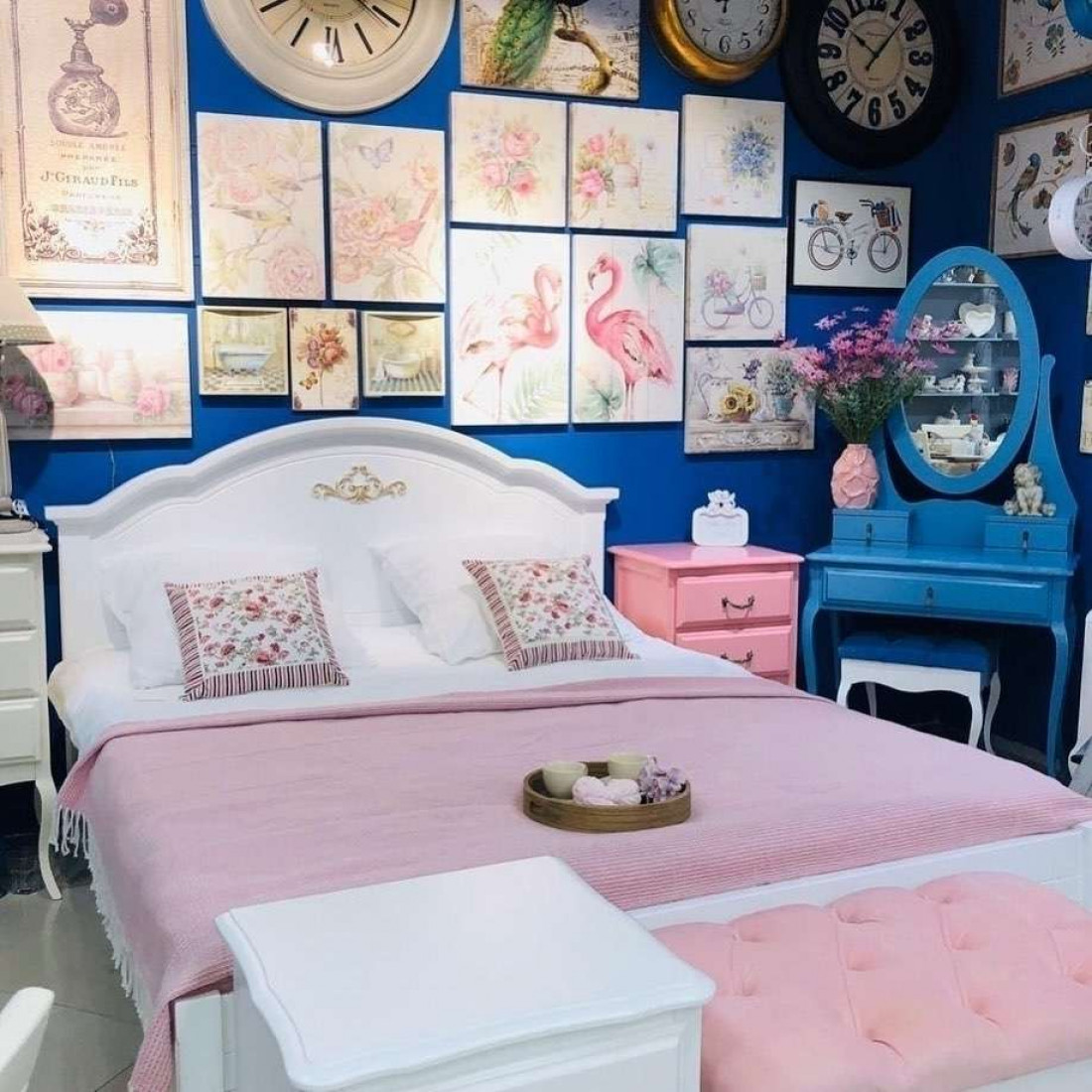 Двуспальная кровать с подъемным механизмом BOGEMIA (синий)
