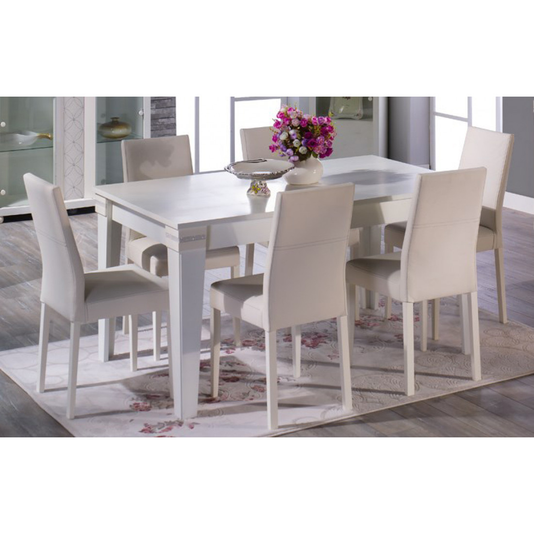 Раскладной обеденный стол MIRA-04 (белый) серии Мира от Беллона обладает оптимальными размерами для столовой, гостиной средних размеров или просторной кухни. В сложенном виде за ним комфортно расположится семья из шести человек, в конструкции предусмотрена вставка, увеличивающая модель в длину на 40 см. Купить раскладной стол рекомендуем со стульями – комплект из шести стульев по акции стал доступней!