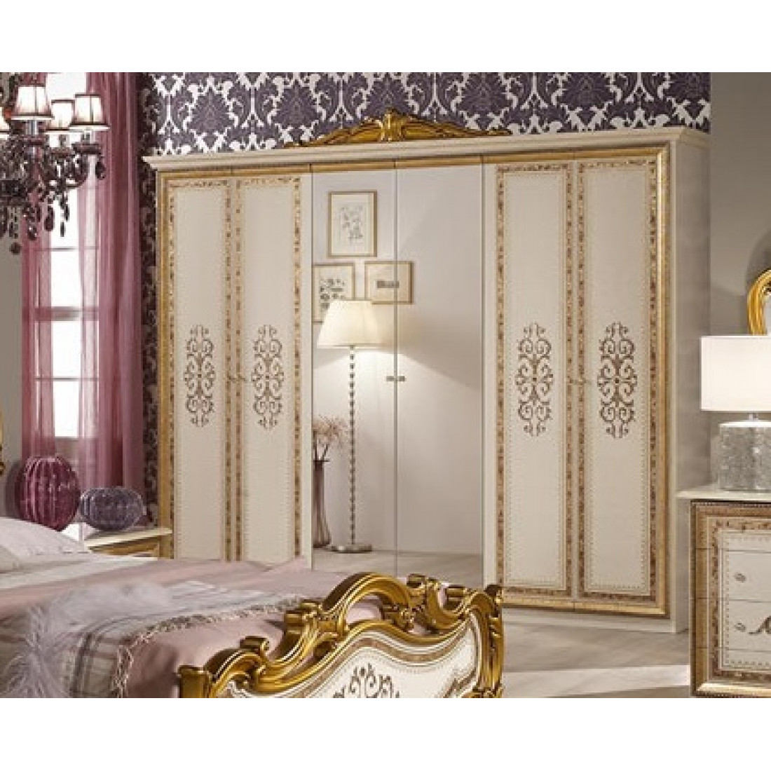 Шестистворчатый шкаф для одежды Анита (беж) от Российской фабрики «ДИА мебель» выполнен в бежевом цвете с отделкой декоративным профилем золотых фасадов. Он разделен на три части, две из которых имеют не только большие и вместительные полки для одежды но и большую штангу для вешалок. Такой шкаф поможет вам с экономить место и удивит своей многофункциональностью. Такой шкаф коллекции "Анита" придаст вашей спальне экстравагантность, и принесет свежие нотки в Ваш дом.