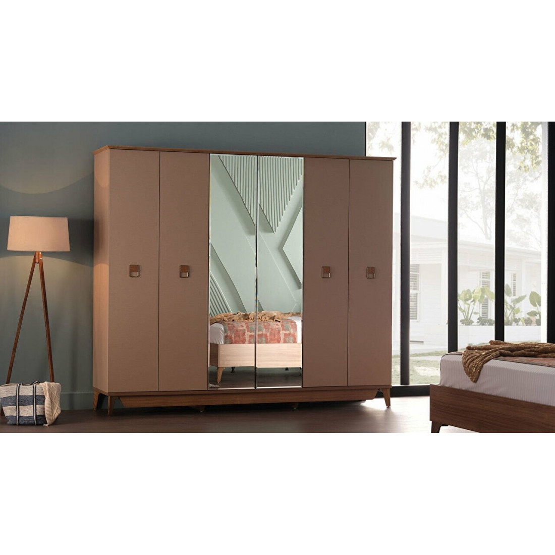 Пятистворчатый шкаф для одежды с зеркалом Rimini РМШ1/5 (слоновая кость)