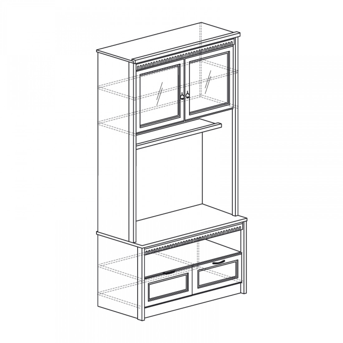 Фасады: МДФ, декор – дуб оксфорд серый, патина, зеркало с фацетом