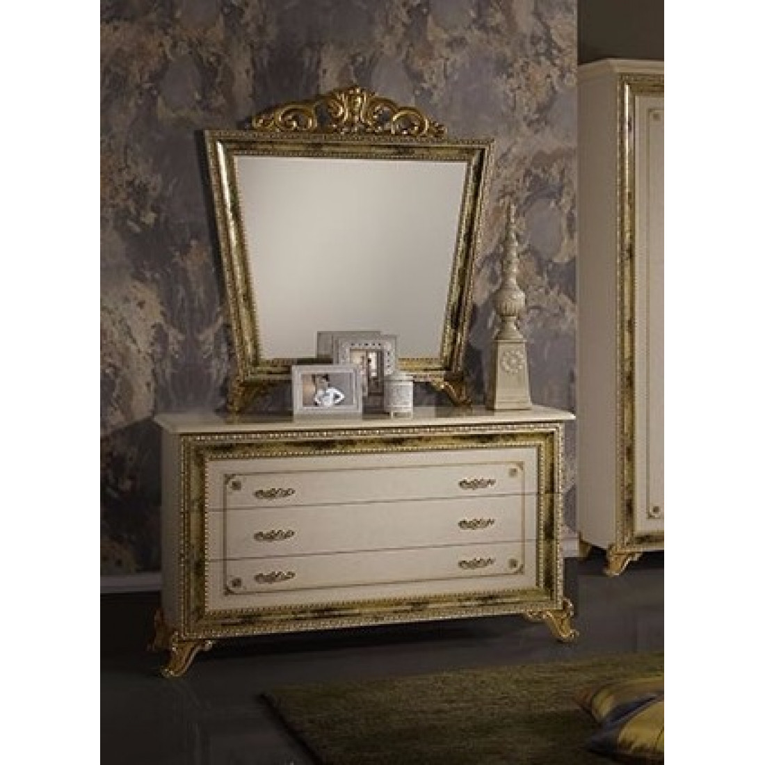 Спальня Катя (беж) от Российской фабрики «ДИА мебель» выполнена в бежевом цвете с глянцевым покрытием. Фасады спальни украшены резной, золотой вставкой. Большие просторные зеркала на шкафу и комоде помогут Вам сделать комнату легче и светлее. Классический стиль коллекции "Катя" по достоинству оценят самые изысканные ценители роскоши. ОРТОПЕДИЧЕСКОЕ ОСНОВАНИЕ ПРИОБРЕТАЕТСЯ ОТДЕЛЬНО