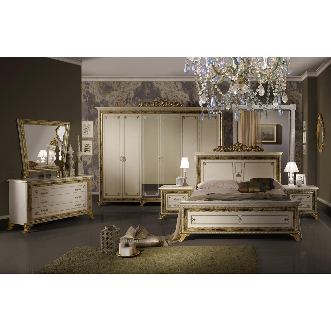 Спальня Катя (беж) композиция 2 от Российской фабрики «ДИА мебель» выполнена в бежевом цвете с глянцевым покрытием. Такой дизайн поможет вам почувствовать чувство расслабления и насладиться прекрасным крепким сном. Фасады спальни украшены резной, золотой вставкой. Большие просторные зеркала на шкафу и комоде помогут Вам сделать комнату легче и светлее. Классический стиль коллекции "Катя" по достоинству оценят самые изысканные ценители роскоши.