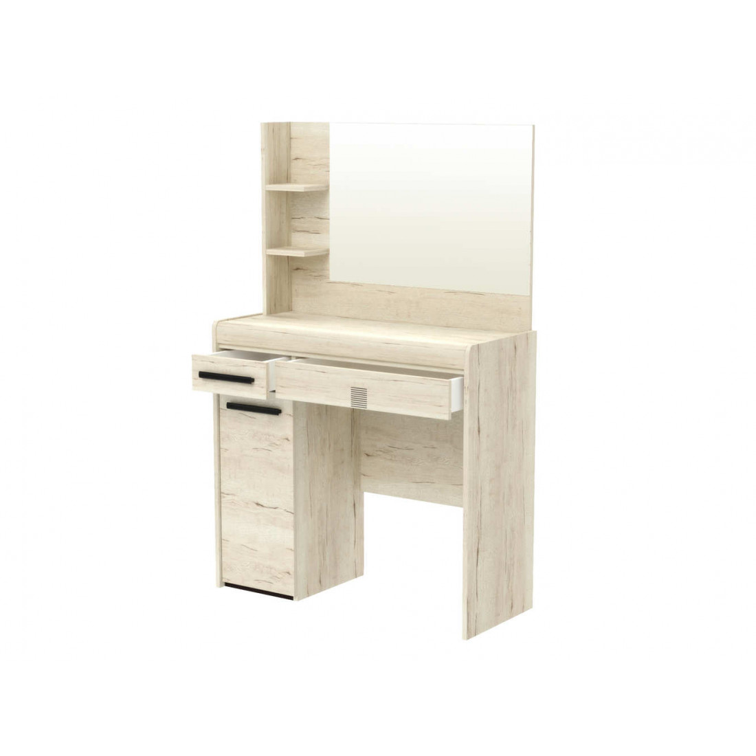Туалетный столик Мале - обладатель лаконичного и свежего дизайна. Он является представителем коллекции «Мале». В этой коллекции особое внимание уделено внешнему виду и тактильным ощущениям от прикосновения к мебели, схожей с натуральным деревом по рисунку и шероховатости. Деко