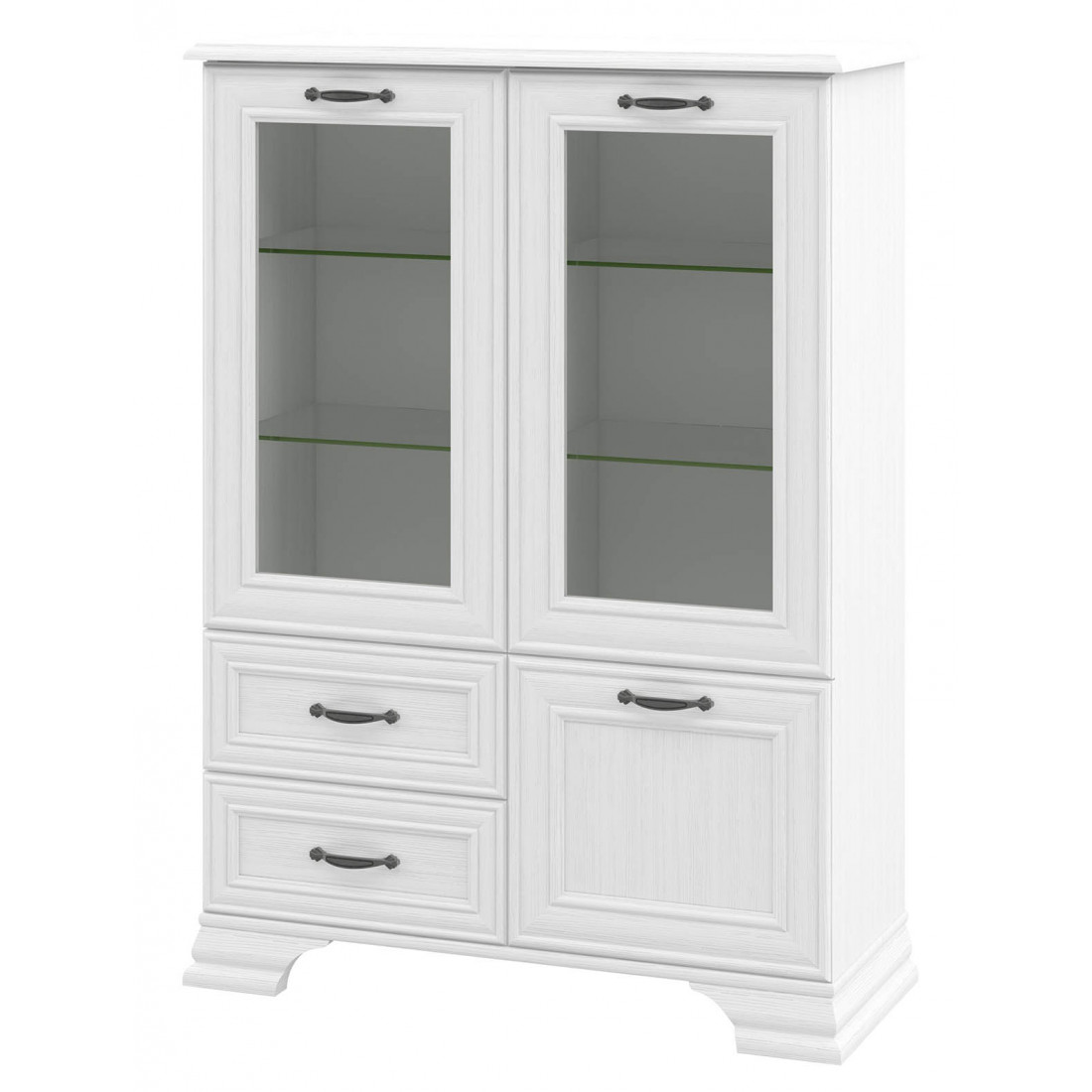 Тумба Юнона МН-132-20 от фабрики Мебель-Неман - универсальная тумба-витрина в классическом стиле с отделкой структурной фактуры, обрамленная рамочным фасадом, где металлические ручки выгодно подчёркивают стиль и изящество, всегда актуальна и востребована.