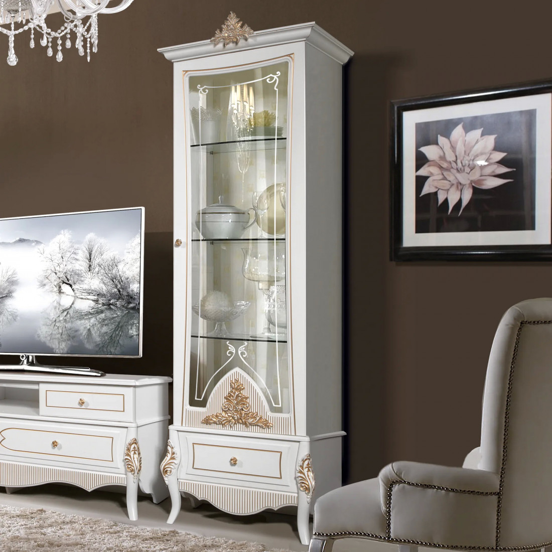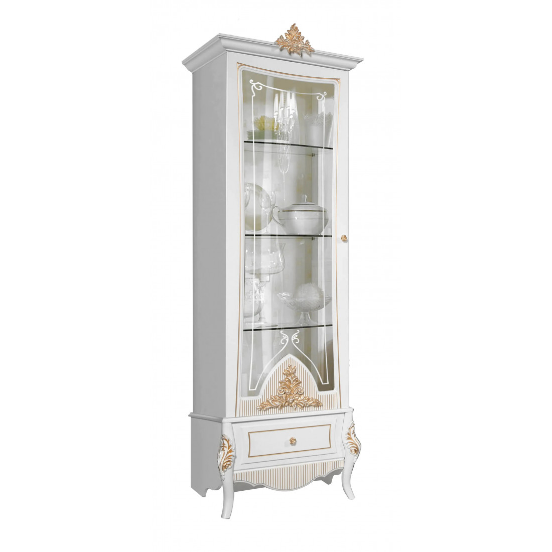 Витрина однодверная в гостиную Стелла (белый золото)